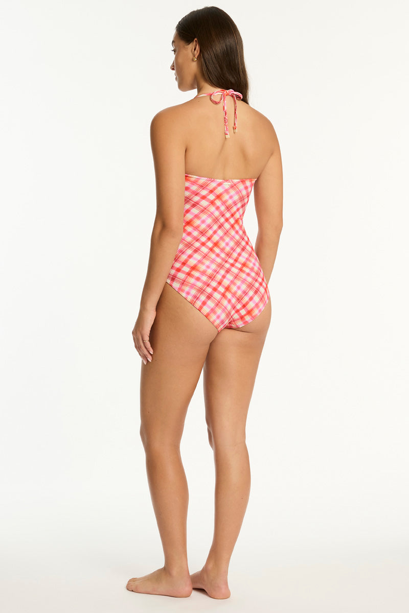 Our Somerset collection channels a romantic storyline with its vintage check design and dreamy boho-coastal aesthetic. Somerset swim collection is printed on a soft lightweight pique base for this seasons ultimate cheeky gingham.